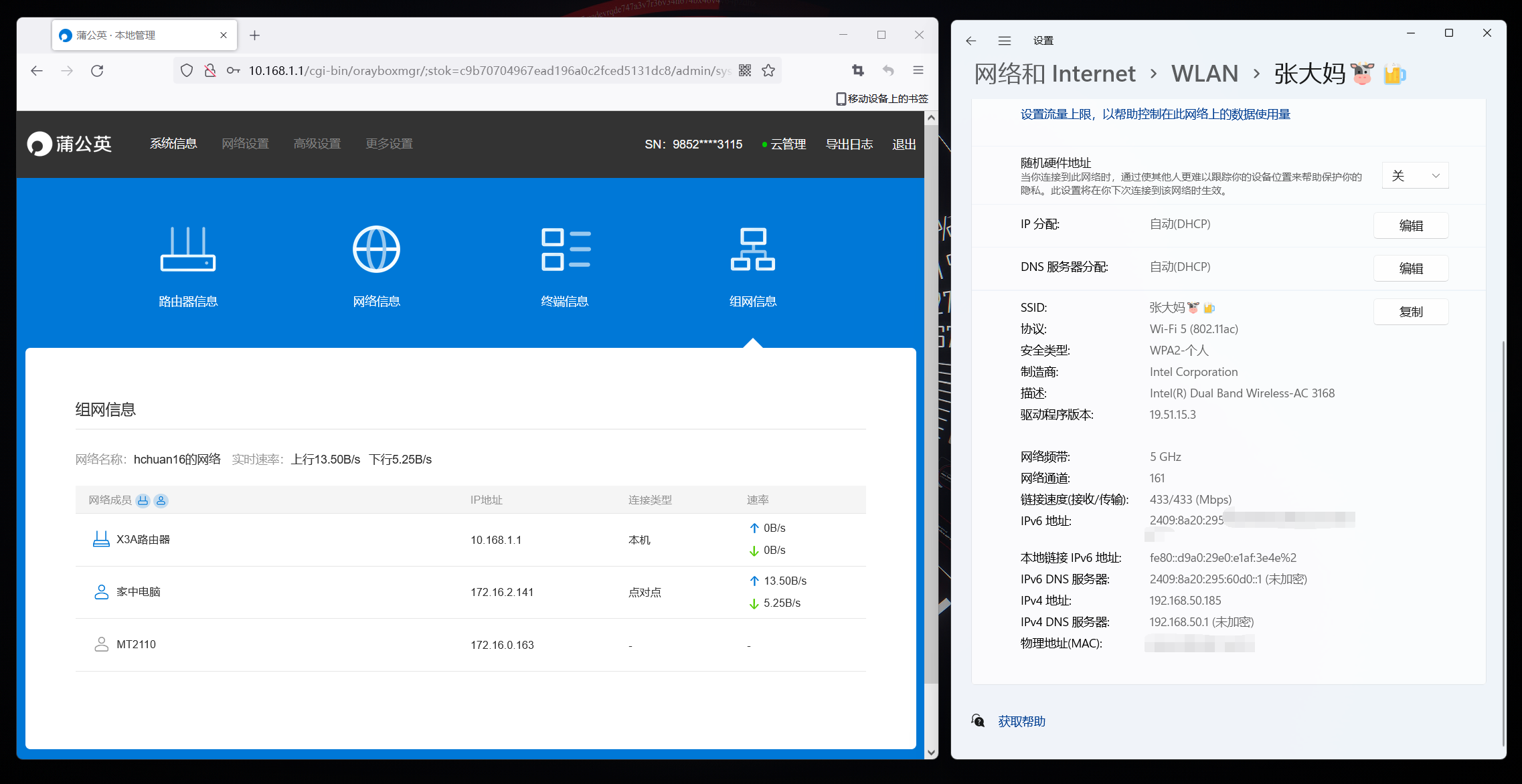 本次实际测试目标为蒲公英组网后的传输速度,客户端是这台电脑,服务端为外网威联通,威联通的IP为: