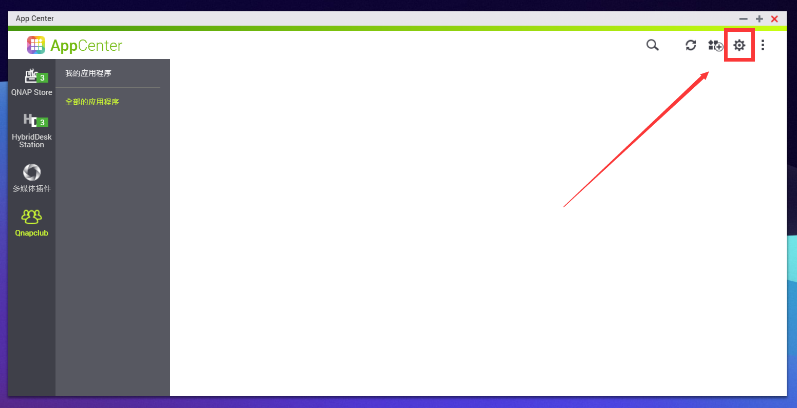 进入AppCenter,点击右上角齿轮图标的设置。