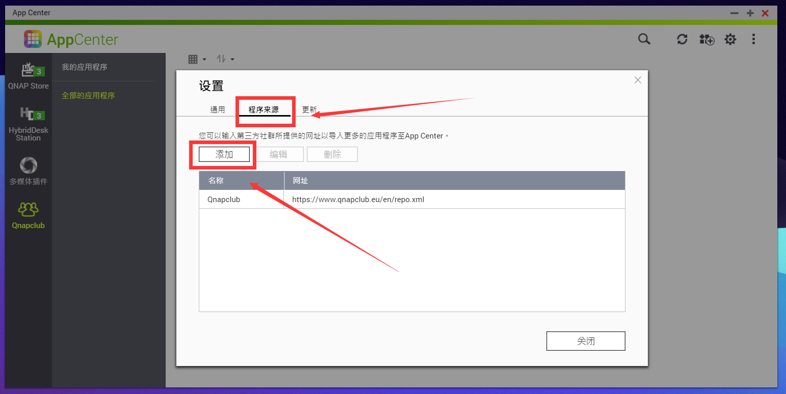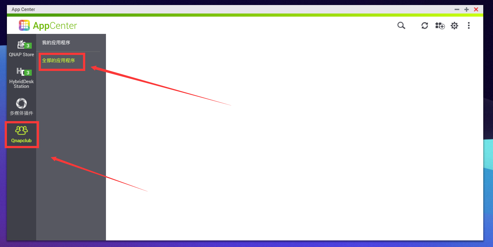 确认添加后退出AppCenter,重新进入,这里能看到多了个QnapClub的图标,点进去选全部的应用程序。