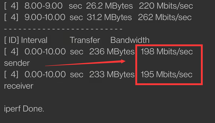 发送端平均带宽为195Mbps