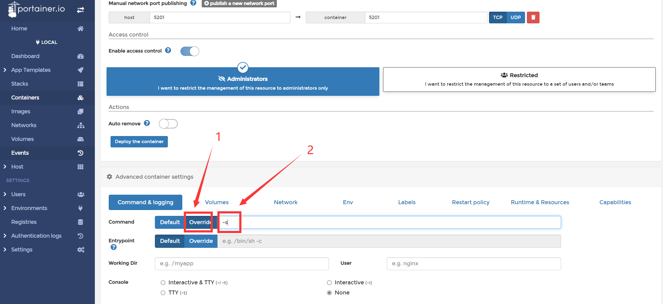 全部确认后,点击deploy the container。
