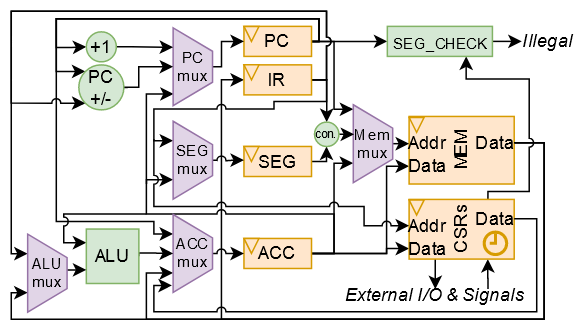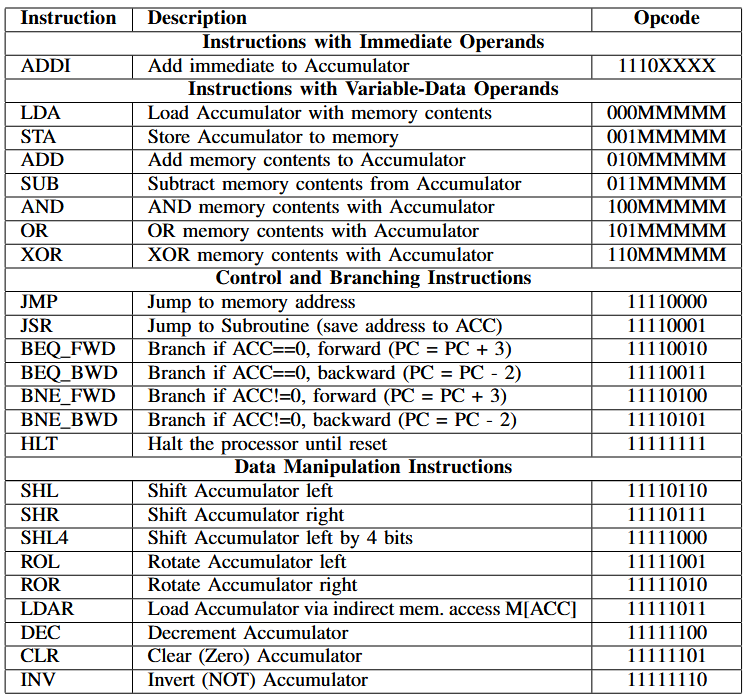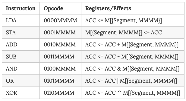 考虑到大小限制,内存访问“带有可变数据操作数的指令”仅使用 5 位来指定内存地址,这意味着处理器将被限制为绝对最大 32 字节内存。