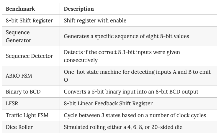 在这个实验的早期阶段,我们对与对话式 LLM 交互的标准化和(理想情况下)自动化流程的潜力感兴趣,该流程将从规范开始,最终产生该设计的硬件描述语言。鉴于我们只有 8 位输入,我们决定使用其中 3 位来控制设计选择多路复用器,以适应 8 个小型基准测试。如果这些进展顺利,我们就会致力于下一步,构建更具雄心的事情。