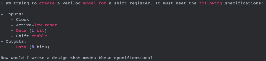 当时,我正在纽约大学从事博士后工作,其中之一是探索使用 LLM 来进行 Verilog(一种用于描述、设计电子系统的硬件描述语言)硬件设计。我们对使用 ChatGPT 等 LLM 来设计硬件的各种不同应用程序进行了基准测试,包括规范解释、设计以及错误检测和修复。