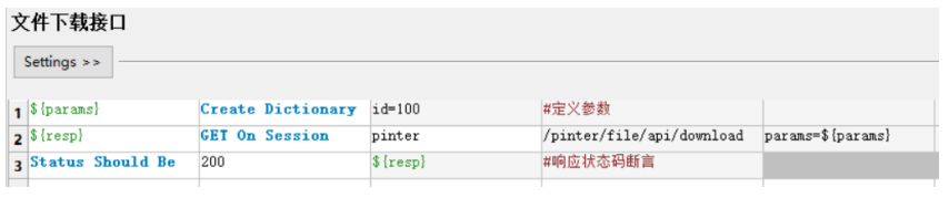 Create Sesion:这是接口库提供的一个关键字,用来创建一个session对象pinter:这是自定义起的一个session对象的名字,用于后续其他地方要使用时进行引用${host}:这是引用集合变量定义的host2. get接口