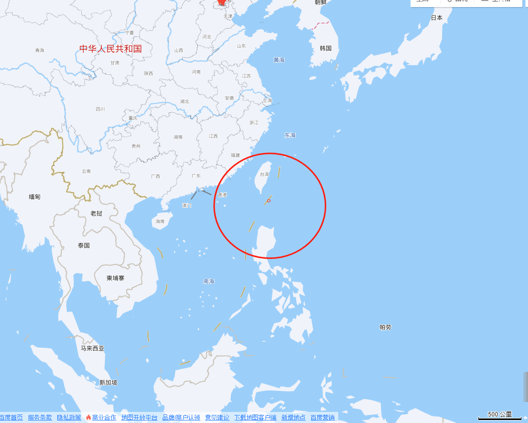 ▲如果山东舰在经过巴士海峡时也保持一个400海里的防御圈,那么台湾全岛的军队都得净空了。