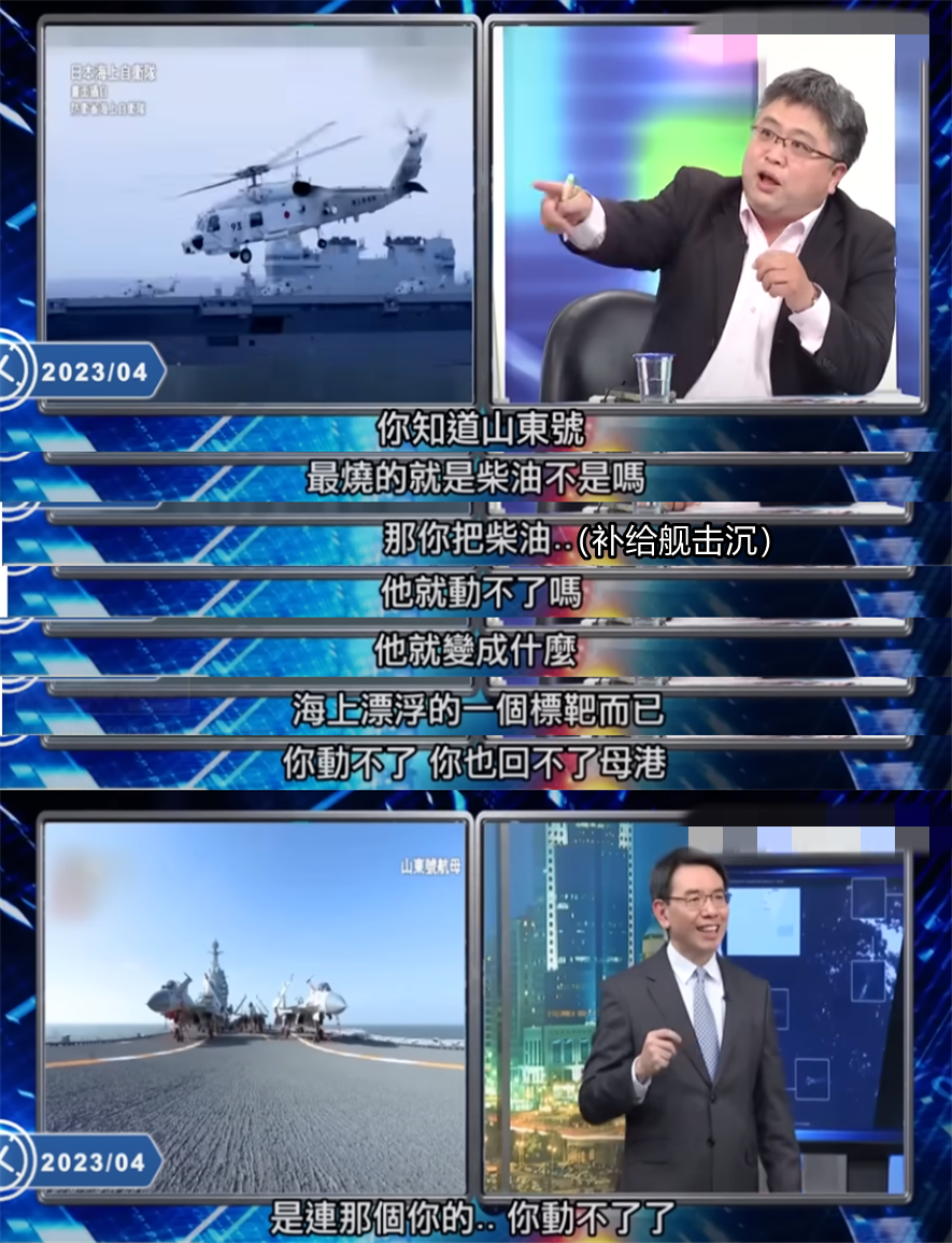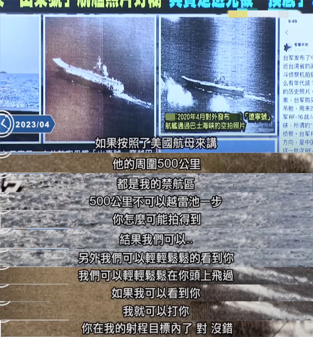 随后,台湾专家有紧接着说:大陆人嘲笑我们拍的山东舰照片太低,其实这是我们故意这样拍的,是为了不让大陆摸底,不让大陆人知道我们侦察机拍摄出来的质量。
