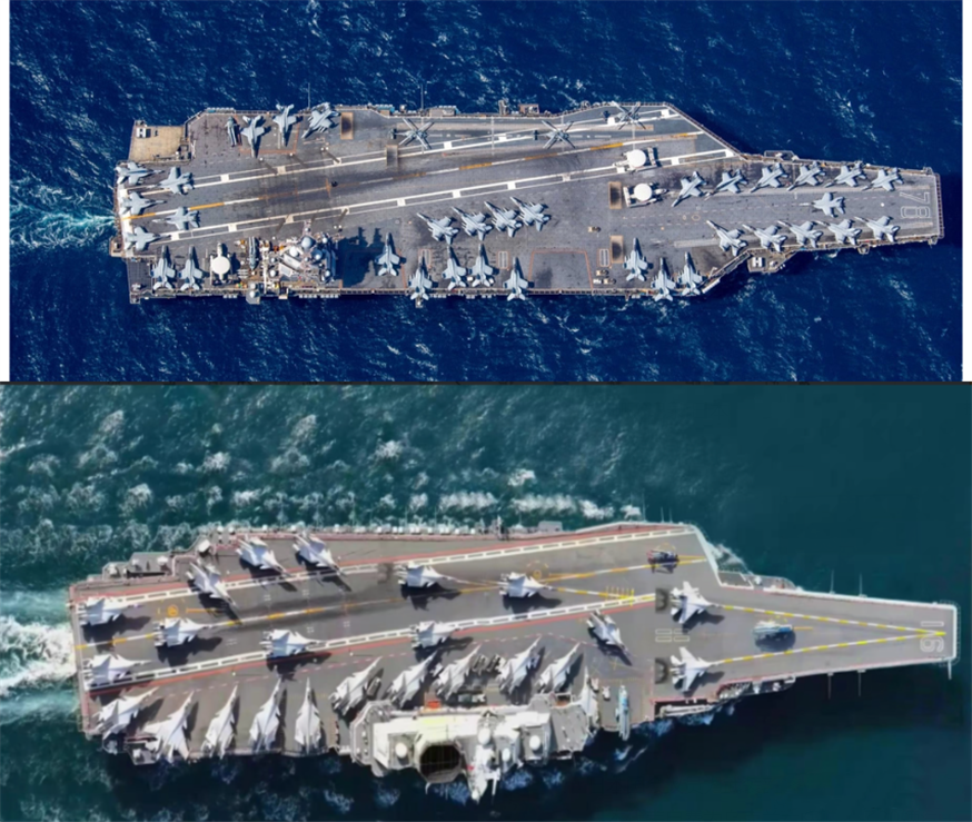 ▲美国新型航母福特号的甲板也熏黑掉漆