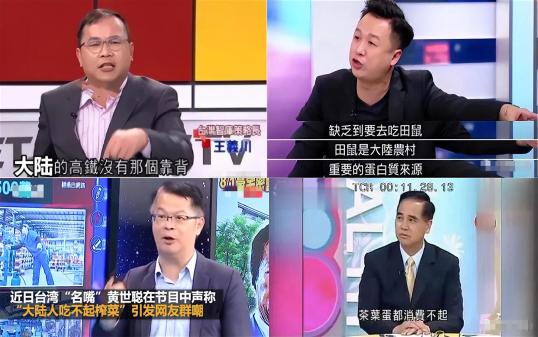 从前几年的“大陆人吃不起茶叶蛋”“大陆人吃田鼠补充蛋白质”“大陆人吃不起榨菜”,再到如今的“大陆高铁上没有靠背”“马英九参观的大陆繁华街道都是临时搭建的”.......