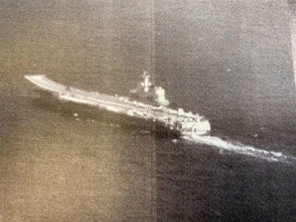 资料图:今年4月份,台军RF-5E侦察机拍摄的我军“辽宁”舰黑白照