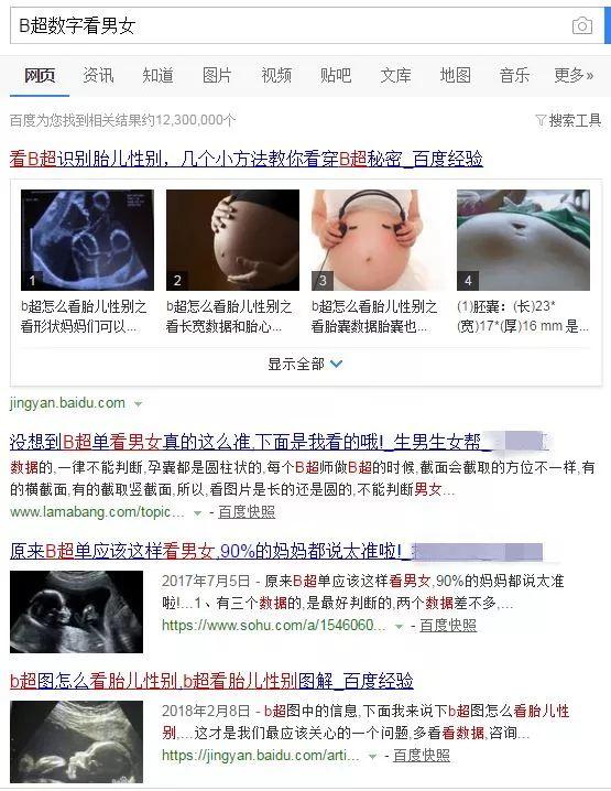 打开某度一搜,“B超数字看男女”