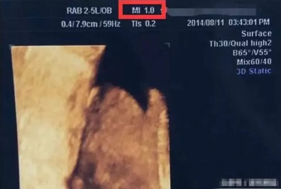 这里显示的“MI”,英文全名:Mechanical index,意思其实是--“超声机械指数”!