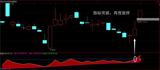 3、OBV线急速上升时,表示力量将用尽为卖出信号。