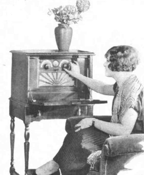 1925年5月,《家庭杂志》中的收音机专栏收录了市场上的一些便携式设备。这里展示的年轻女士正在收听Kodel P11单电子管型号收音机产品,它的尺寸仅为5-3 / 4 x 4-1 / 4 x 3英寸,无论有无天线都可以使用。看来这是C11型号的便携版本。