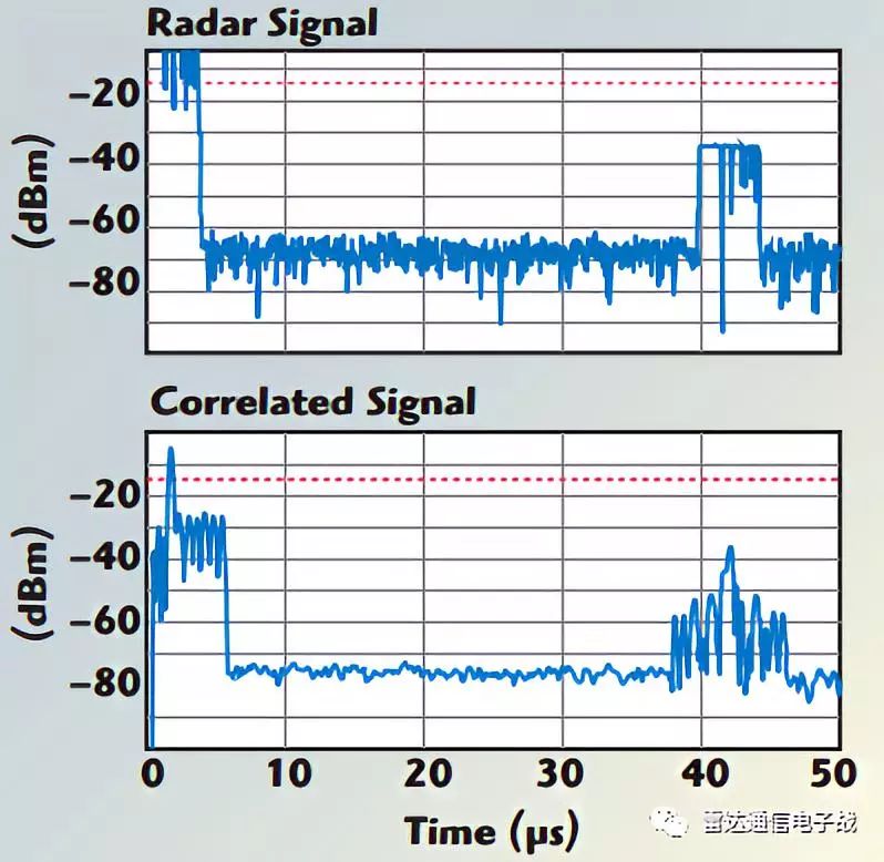 依赖于DRFM产生的回波信号保真度很可能与实际目标不同。聚焦于电子战保护的雷达处理过程可以检测回波的保真度差异。图7显示测量开始时的巴克码雷达信号,相应的雷达回波信号衰减约50分贝,延迟40微秒。
