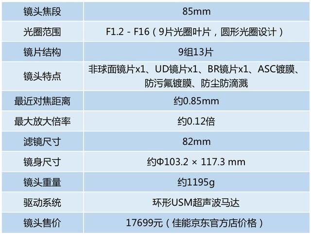 佳能RF 85mm F1.2 L USM镜头的整体规格非常高