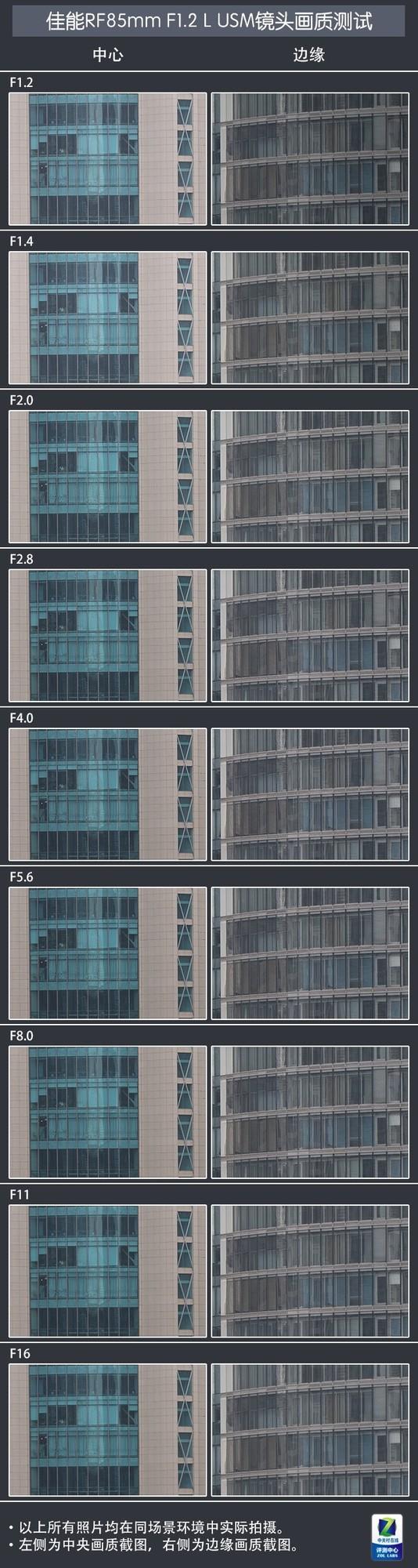 各档光圈下,这支镜头的中心、边缘画质都无可挑剔