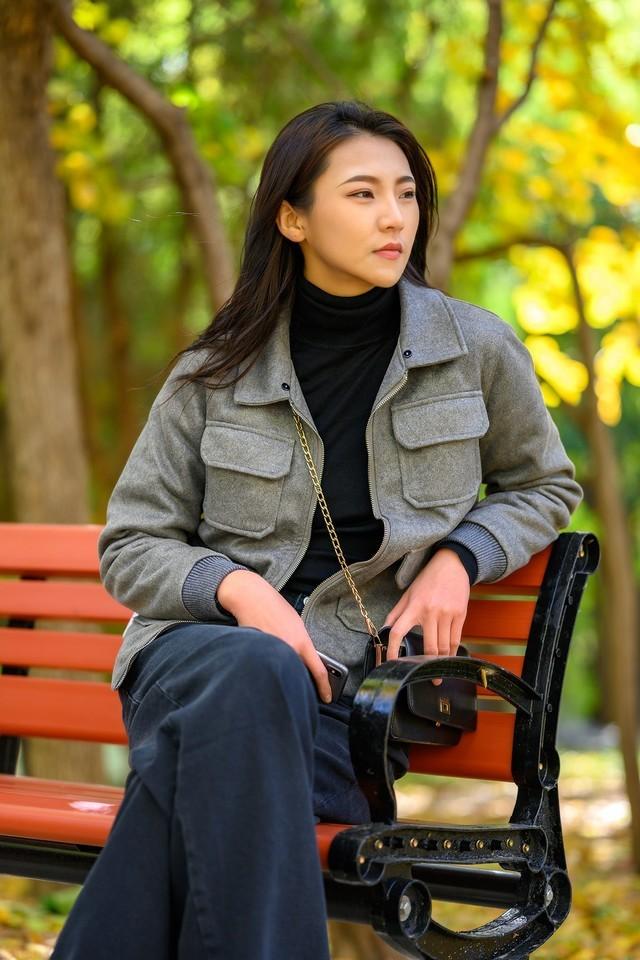 比如这张照片,利用了F1.2光圈的特性,将前景的针叶和背景的银杏叶同时虚化,让前景和背景都达到很唯美的效果。同时画面人物的颜色还形成了明显的反差,既突出了人物主体,又可以让画面看上去更唯美。另外针叶的前景刚好可以挡住人物单调的服装,达到点睛的效果。