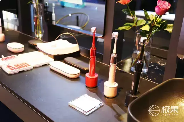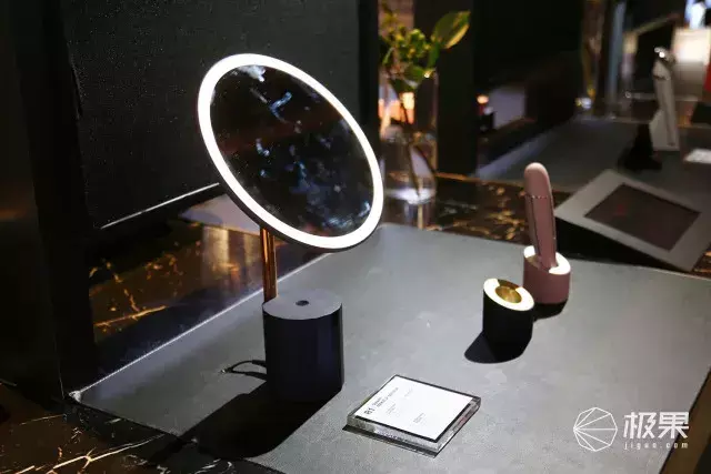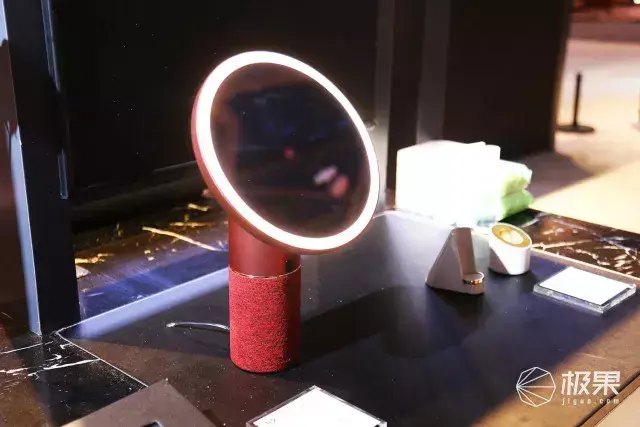 现场展出的XESS智能美妆镜分为两款,其中R1精致款主打的功能是感应开关,三色模拟环境光和触控切换色温以及无级滑动调光等技术,并且搭配三百六十度侧入式环形灯,能够最大限度还原人脸颜色,减少由于灯光引起的色差。