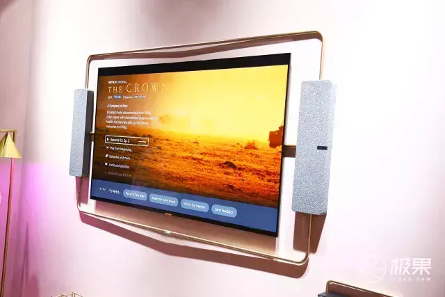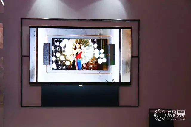 除了X10之外,TCL在现场还展出了 XESS 的全场景 TV 。作为TCL旗下的高端子品牌,本次带来的浮窗全景TV也同样吸人眼球。这款电视拥有装饰美学、立体美学、新造型美学、东方美学四大艺术外观,挂在墙上根本没有家电的感觉,反而很像是一件艺术品: