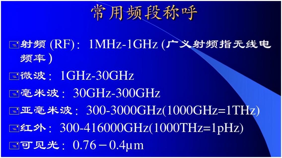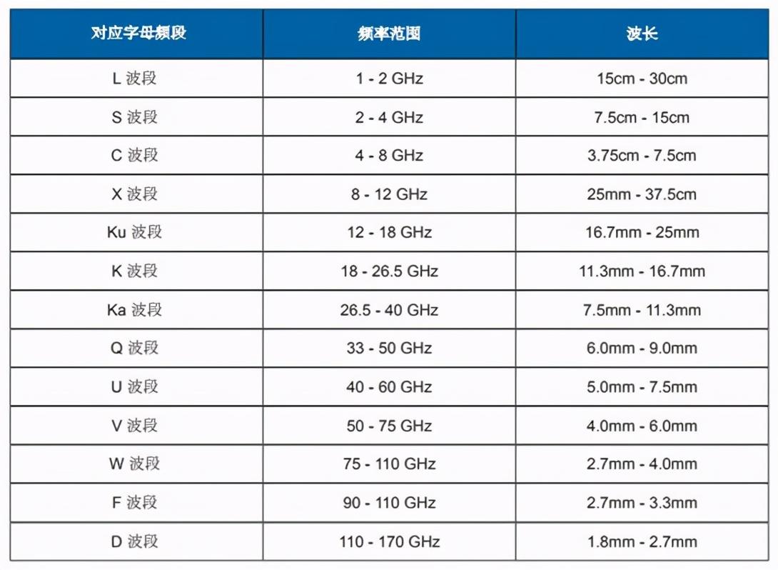 「兆亿微波商城」射频波段、频率与波长对照表