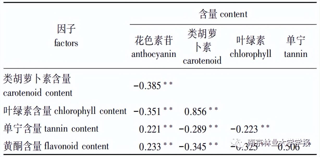 ▼表 1 青钱柳叶色素含量与多酚类物质含量的相关性分析(n=60)