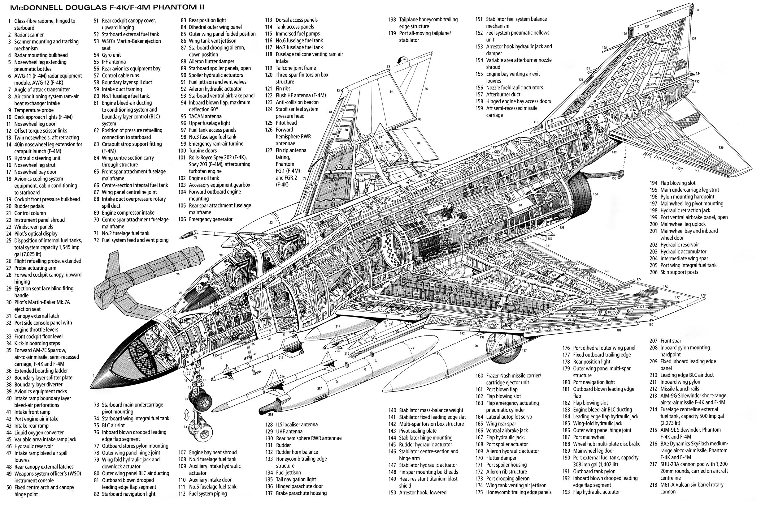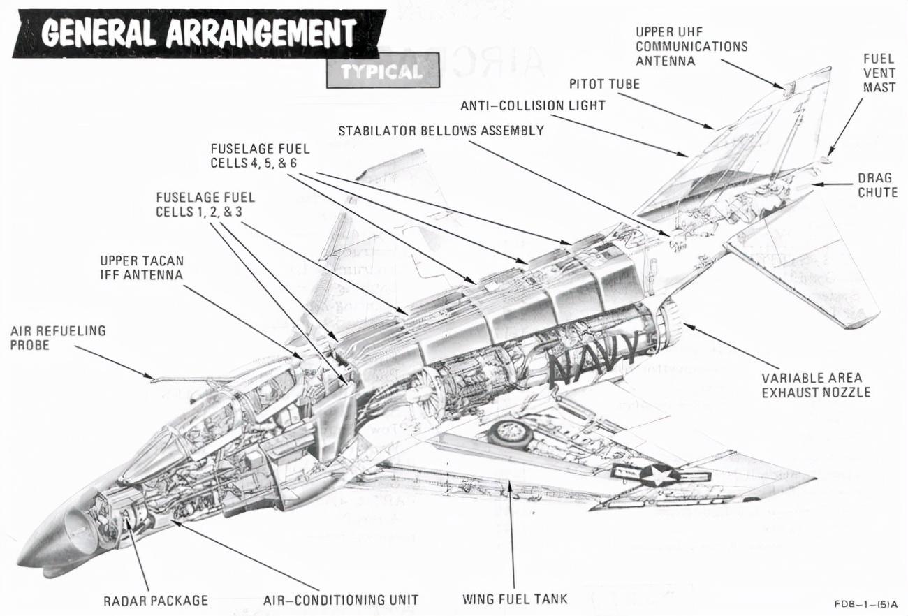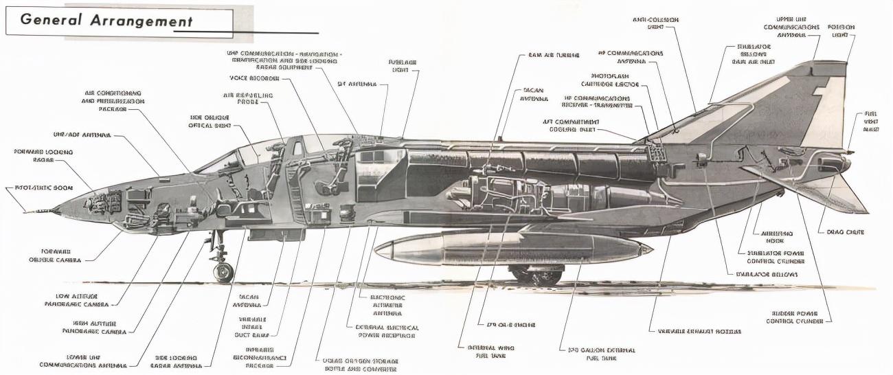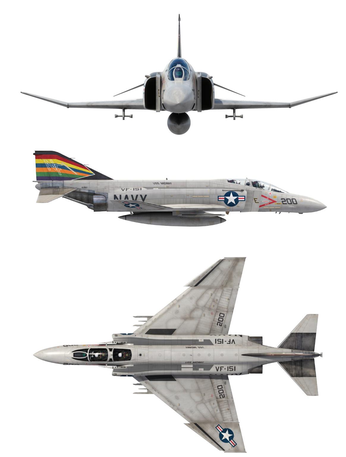F-4B: 海军全天候舰载战斗机,用户为美国海军及陆战队动力为两台J79-GE-8引擎,武器同A型,无机炮。双重操纵,后座可驾驶飞机。