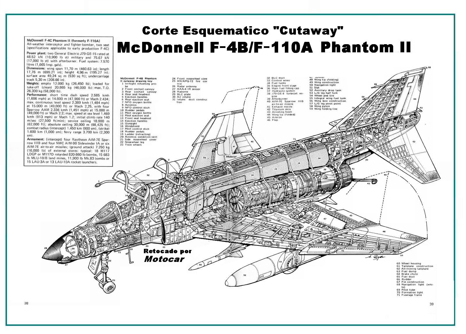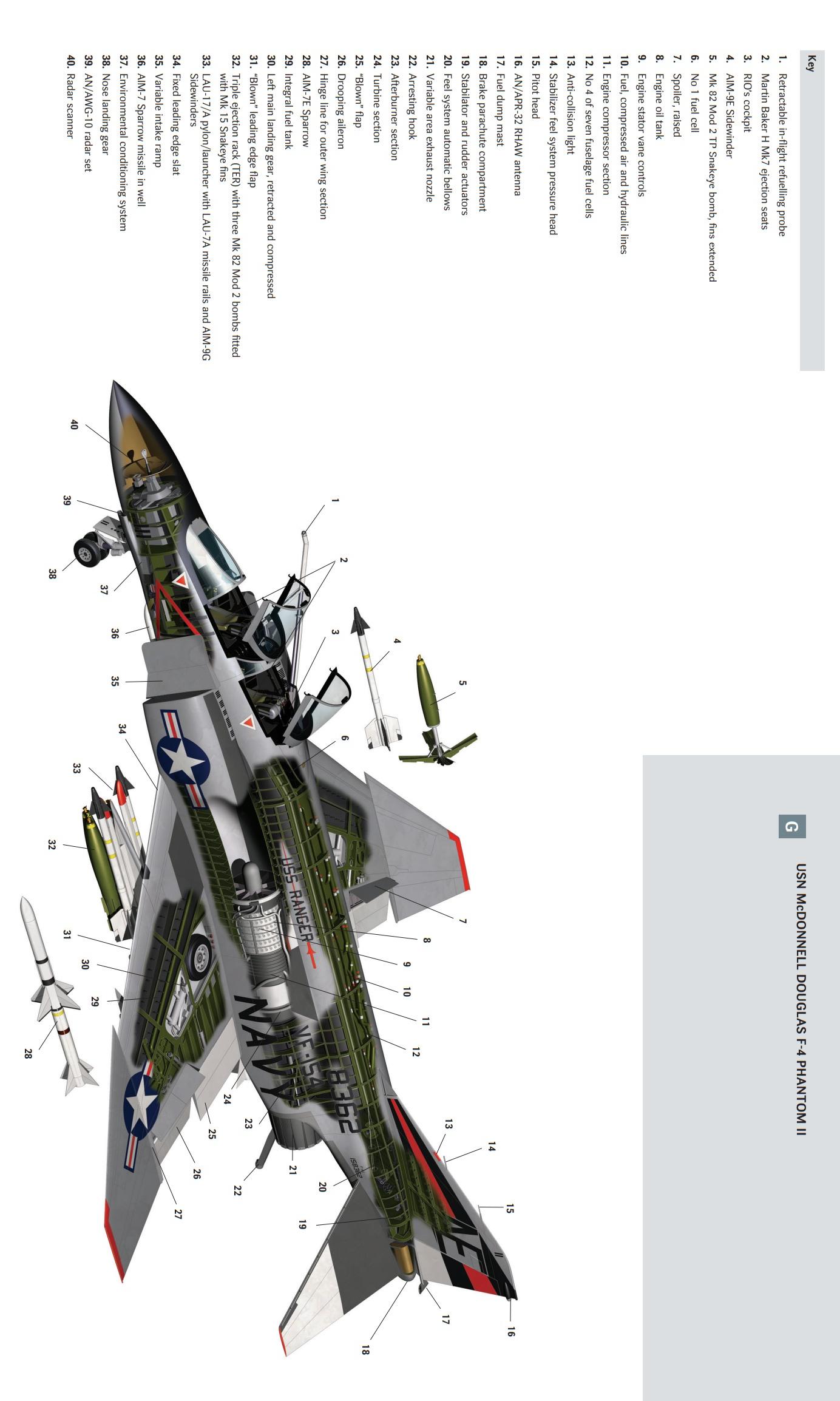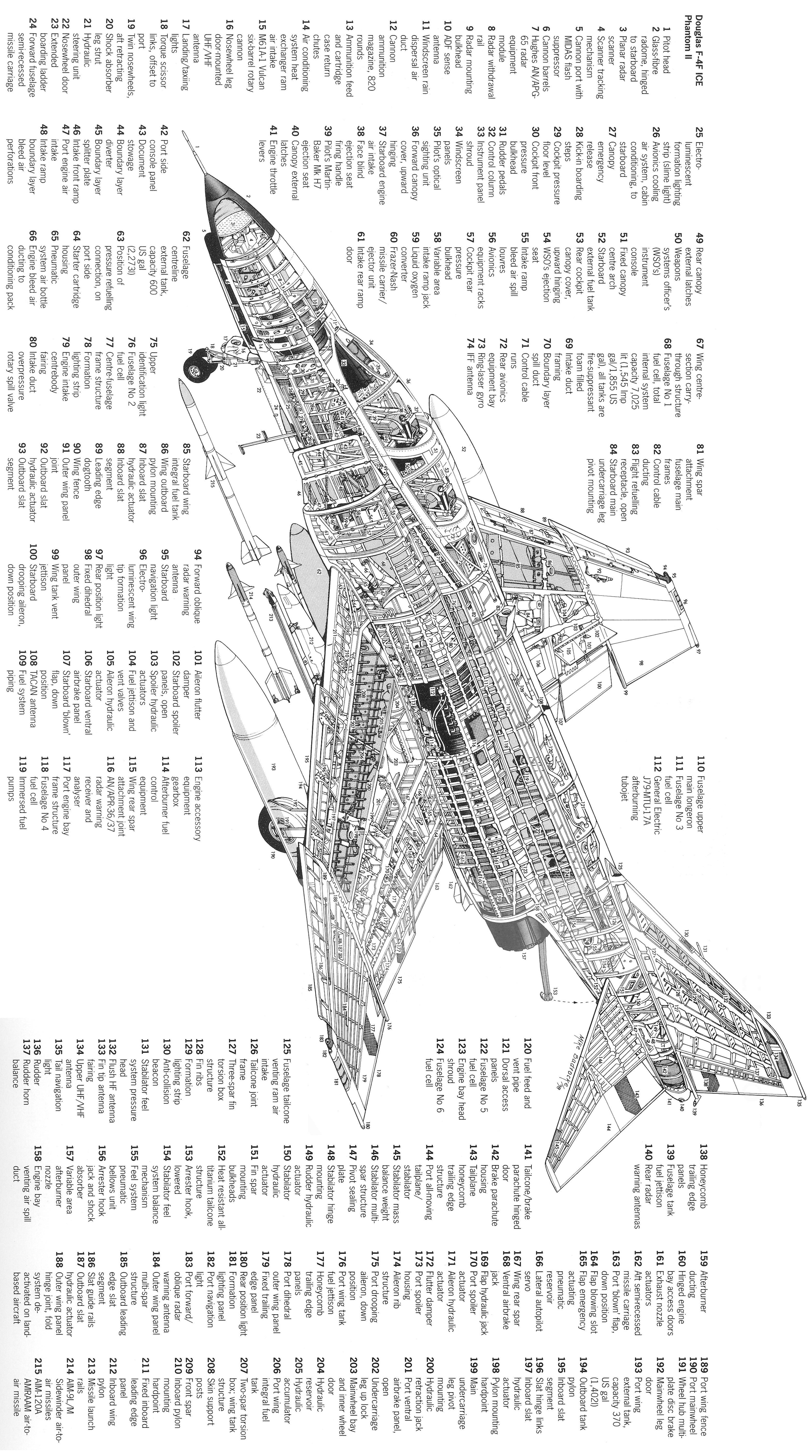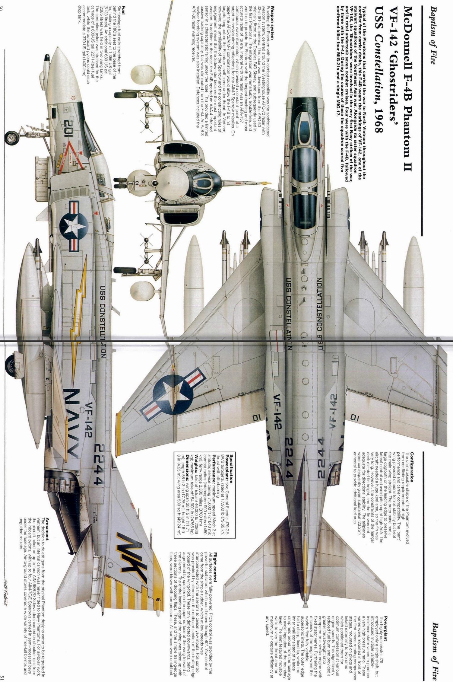 F-4B: 海军全天候舰载战斗机,用户为美国海军及陆战队动力为两台J79-GE-8引擎,武器同A型,无机炮。双重操纵,后座可驾驶飞机。