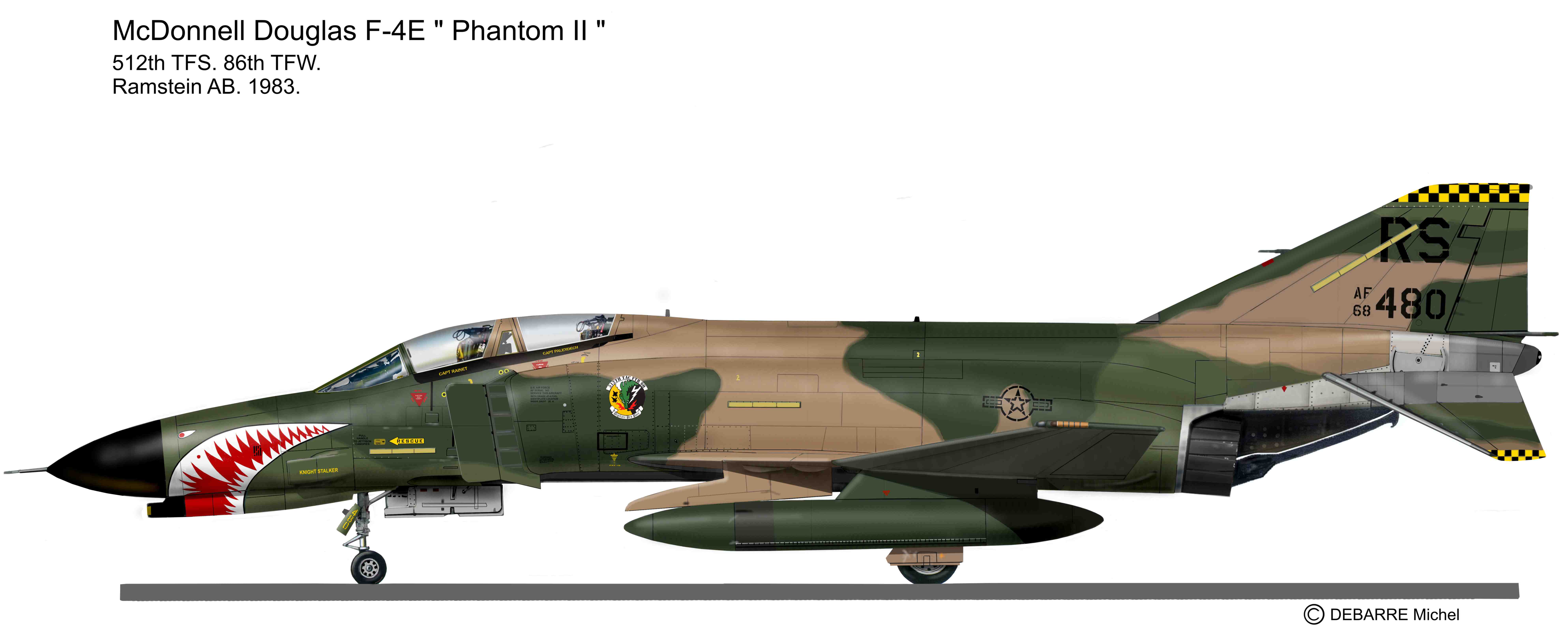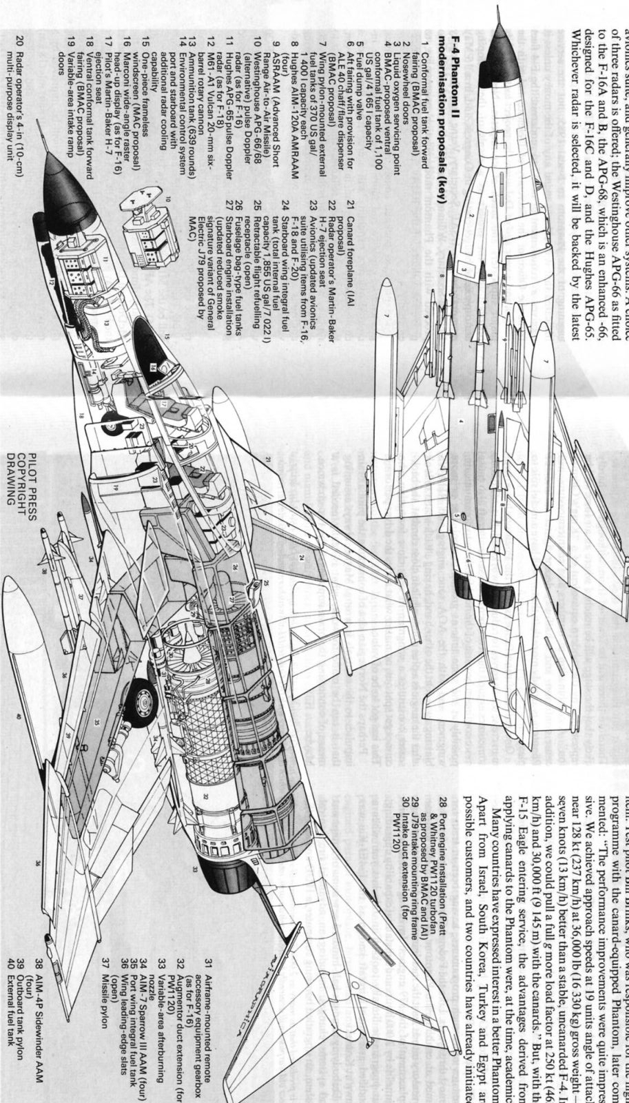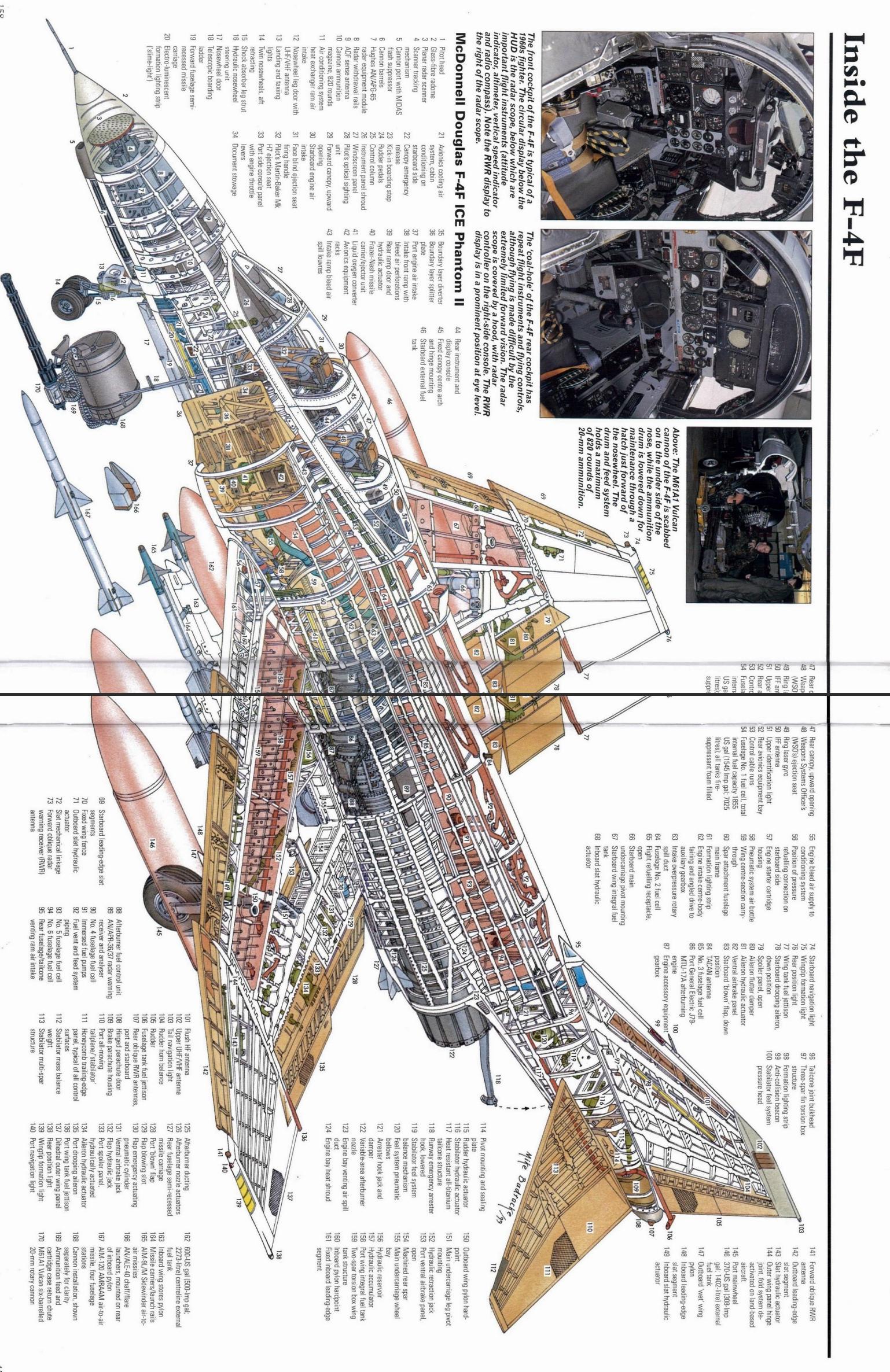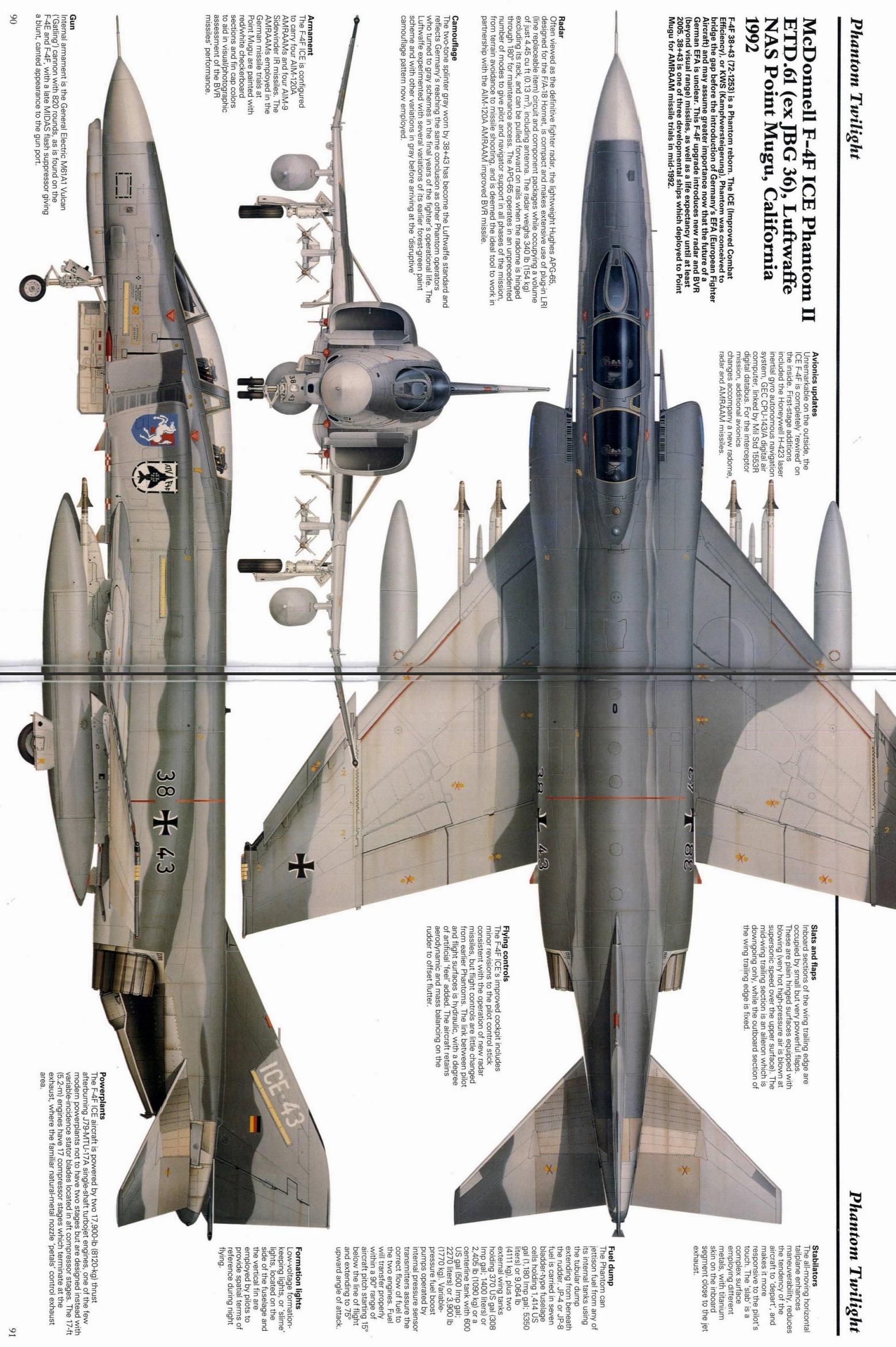 F-4F: E型为基础出口西德专用改进型,减少了一个内部油箱,不能携带麻雀空空导弹。83年升级后换为与F/A-18相同的AN/APG-65雷达,并能够发射AIM-120先进中距空对空导弹。