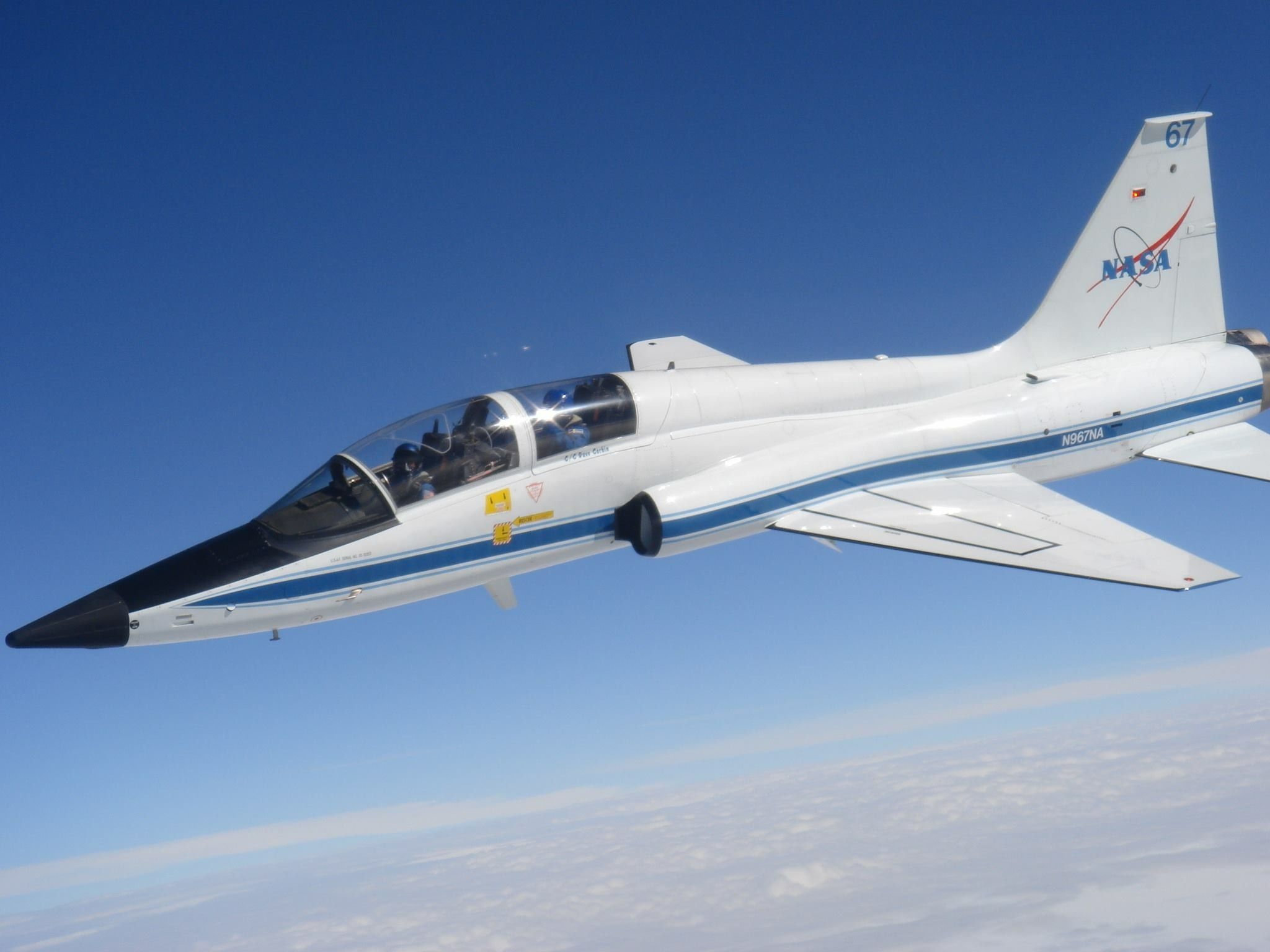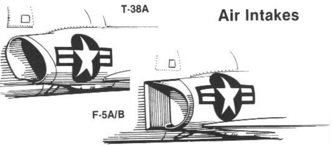 美国空军装备的超音速教练机教练机,该机和F-5系列同属N-156方案衍生,因此和F-5B十分相像。主要区别在进气道和机翼,T-38采用近似圆型进气道,F-5采用半圆进气道;T-38没有F-5系列的小边条。