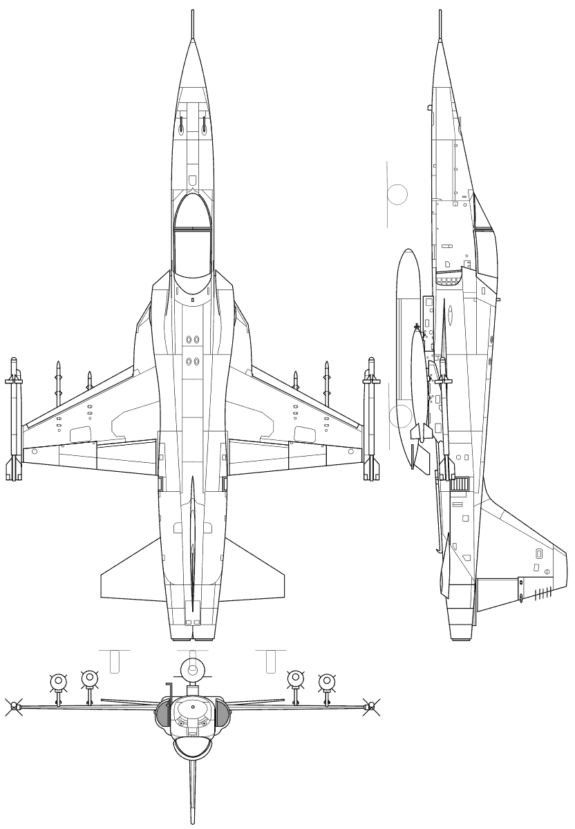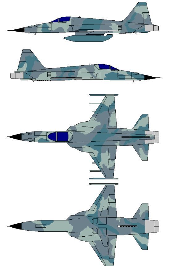 针对mig-21威胁,开发的升级版本,F-5E比F-5A更长也更大,拥有更大的机翼面积和更先进的航电,最初使用艾默生AN/APQ-153雷达,有效搜索距离37KM,后期则换装AN/APQ-159雷达。