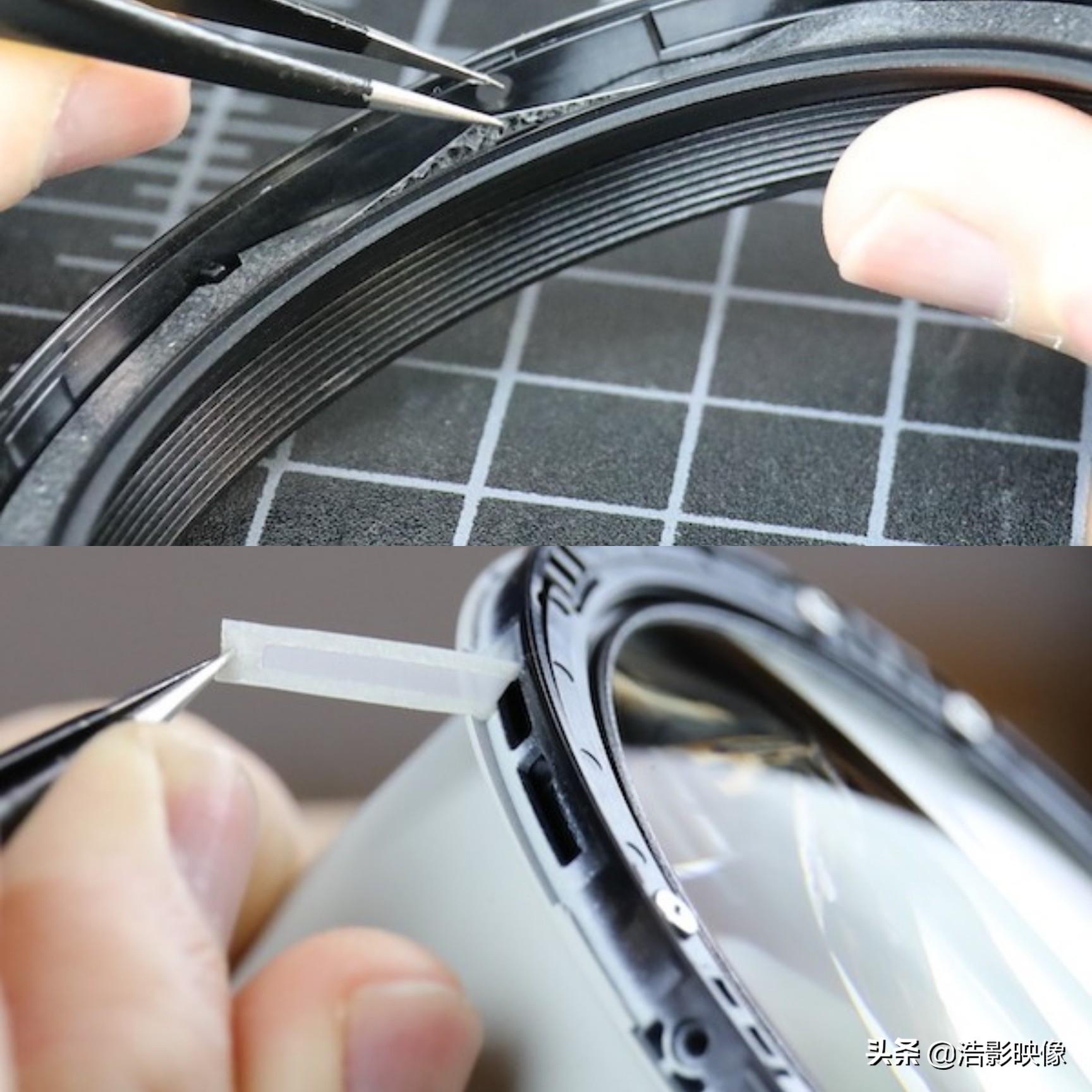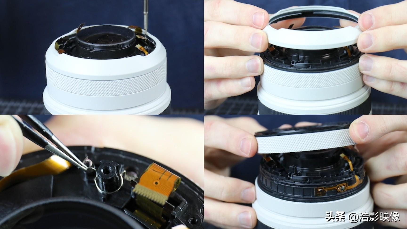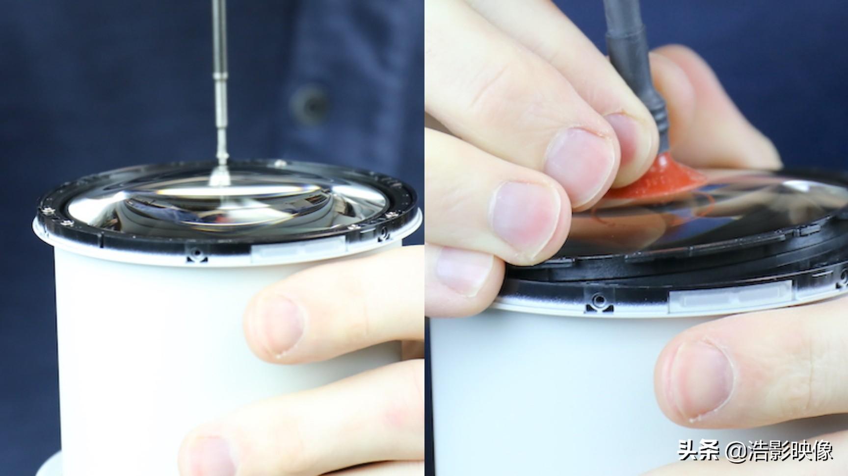 接下来是镜头前面从滤镜环开始,滤镜环比预想的好拆。这个对于滤镜使用量大,后期维修来说非常友好。