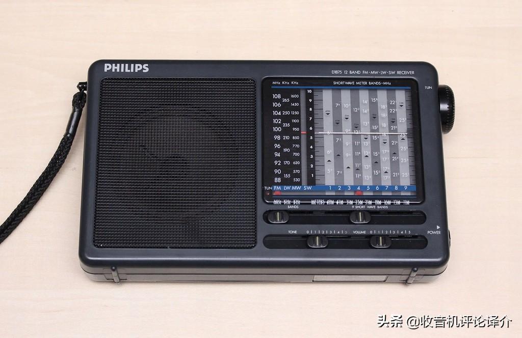 此前,我目睹最多的飞利浦收音机型号是D1875。 它是一款与德生R9700DX、索尼ICF-7601等机器大小相仿、定位相同、功能相近的大便携式指针收音机。此机有港版和京版之分, 前者的产地是我国香港,后者的产地是我国的首都。大家普遍反映,就品质而言,港版优于京版。 多年前,广播爱好者论坛曾批量售出过几百台全新库存的D1875收音机。