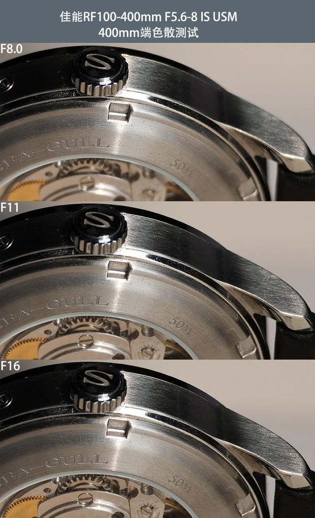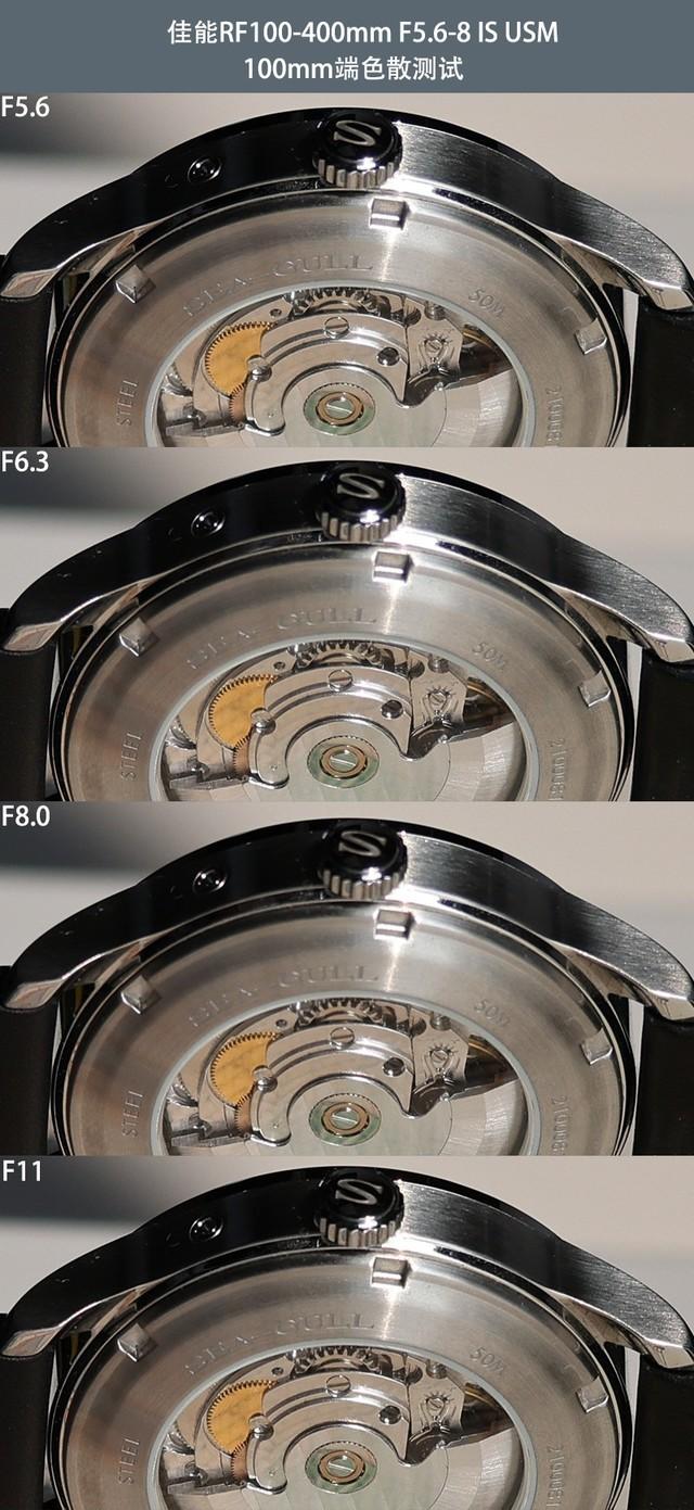 从上面两张图我们可以了解到RF100-400mm F5.6-8 IS USM镜头在抗色散方面的优秀表现,无论是100mm端还是400mm端都没有出现紫边现象,当然这枚镜头本身光圈也不大。