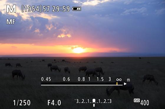 细心的朋友可能发现,佳能RF系列镜头都取消了对焦距离显示窗口,这是因为由于电子卡口成熟化,通讯带宽和速度提升,机身和镜头的沟通更为紧密,MF模式下在取景器内就可以实时显示镜头当前的对焦距离。