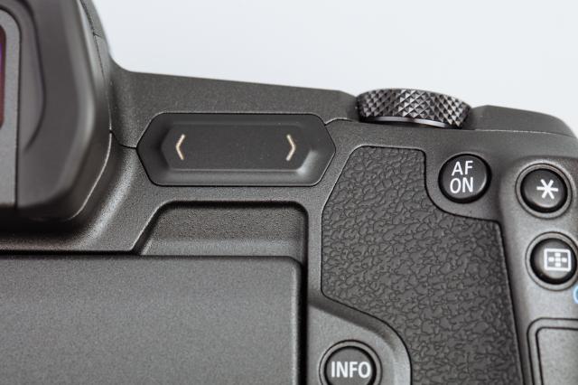 其次就是电子取景器的右侧,是佳能最新的技术尝试——Touch Bar,官方称之为多功能条。多功能条采用触摸触发,可自定义多种拍摄功能的调整,可以通过滑动和左右分别触摸达到三种自定义设置的效果。