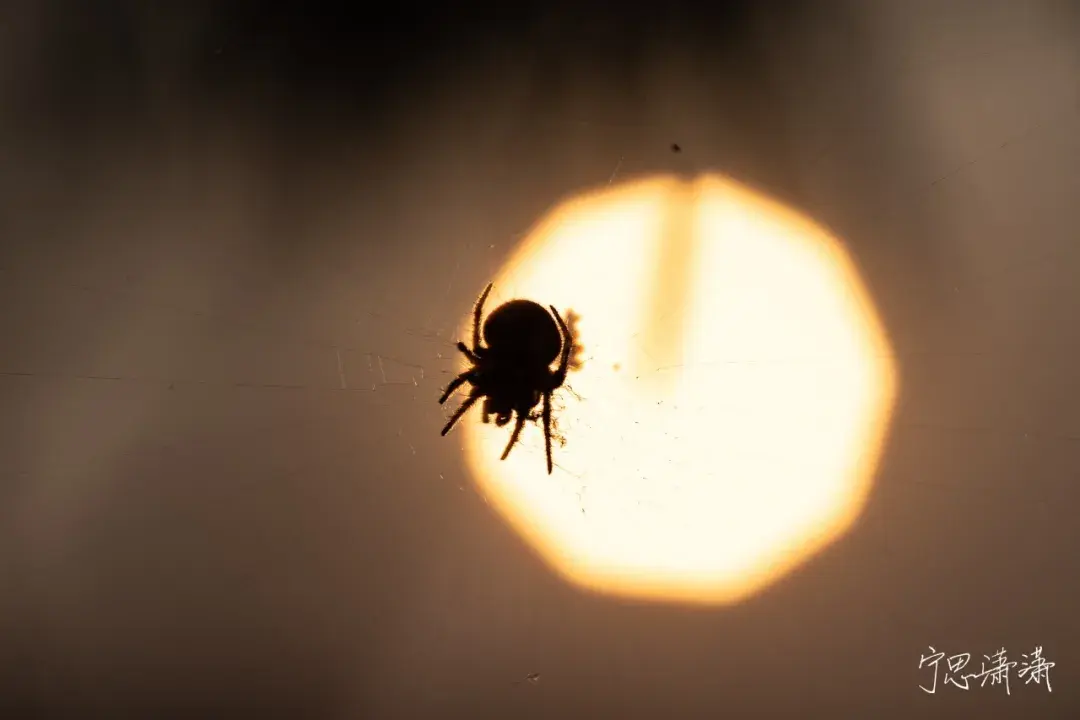 所以在户外拍摄一只小蜘蛛的时候,我都快被折磨疯了。风吹树枝动,小蜘蛛也动,我身体也会晃动。我还想以太阳作为背景。于是手动对焦切到最近对焦距离,靠身体前后轻微移动看到蜘蛛清晰了,就按快门。拍了20多张,也就一两张算是清晰合焦的。