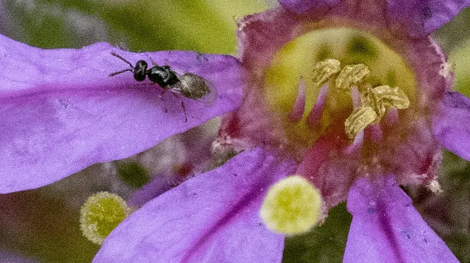花上面的小虫是清晰的,花蕊的雌蕊是清晰的,而雄蕊就是虚的。