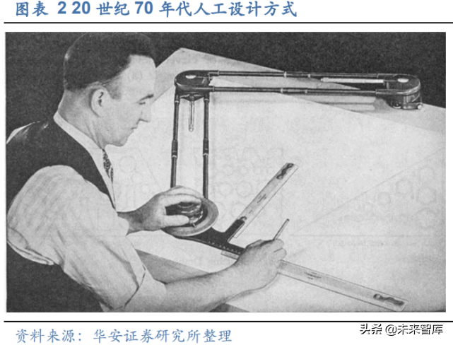 第一阶段:计算机辅助设计(CAD)时代。 20 世纪 70 年代中期,随着 电路集成度的提升,设计人员开始尝试使用 CAD 工具进行设计工程自动化来替 代手工绘图,当时 CAD 的主要功能是交互图形编辑、晶体管级版图设计、布局 布线、设计规则检查、门级电路模拟和验证等。