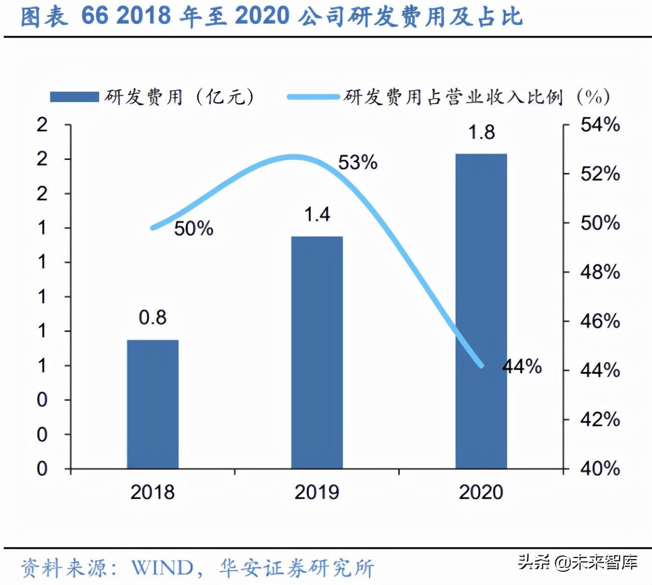 公司重视研发投入,研发费用率维持在 30%以上。2019-2021 年,公司 研发费用率分别为 40.45%、32.69%和 33.05%,始终保持高研发投入。(报告来源:未来智库)