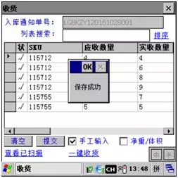 双击货物信息,按实际货物数量输入,确认无误后按ENT保存;本次收货数量可大于选择行应收数量,但不能大于SKU总应收-SKU总实收;当本次数量大于选择行应收-实收数量时,多出部分从上往下自动分配。