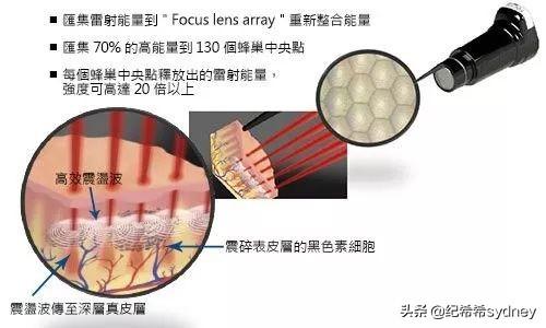 PicoSure :必须是蜂巢透镜 !!!比上一代laser净肤镭射能量的20倍,达到的层面更深、使能量在不破坏表皮皮肤屏障的情况下,将能量传递至更深的真皮层,并帮助刺激胶原蛋白增生。