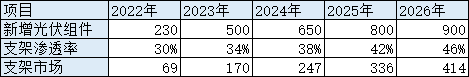 光伏支架的使用主要是按照:光伏组件新增量*光伏支架渗透率 进行测算。