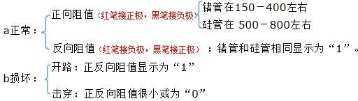e、当三极管 c e 之间正反向阻值很小时,说明该三极管已击穿损坏。