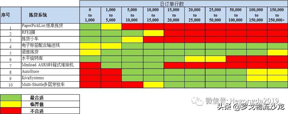 ·边界说明。基于我们的经验,以上10种拣货系统对日订单行数的大小大致可作如下区分: