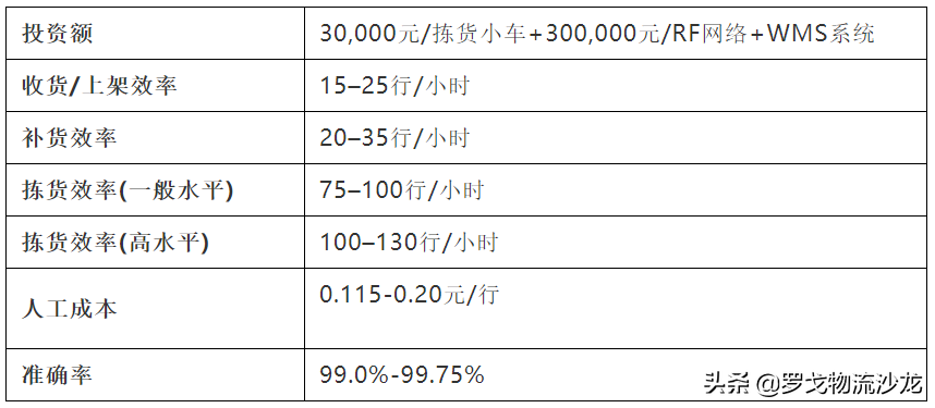 纸单拣选,RF拣选,语音拣选,电子标签拣选,Carousel拣选,Miniload拣选,AutoStore,Kiva,Multi-Shuttle,各种拣货技术从本质上来说无所谓好坏之分,其关键点在于成本与效率或效益的匹配,换句话说就是投入和产出的匹配度如何。