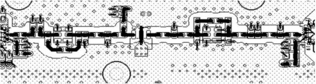 屏蔽腔体的周边是密封的,接口的线引入腔体一般采用带状线或微带线,而腔体内部不同模块采用微带线,不同腔体相连处采用开槽处理,开槽的宽度为3mm,微带线走在正中间。