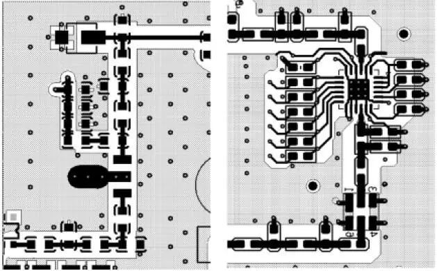 这里讨论的主要是多层板的元器件位置布局。元器件位置布局的关键是固定位于RF路径上的元器件,通过调整其方向,使RF路径的长度最小,并使输入远离输出,尽可能远地分离高功率电路和低功率电路,敏感的模拟信号远离高速数字信号和RF信号。