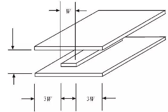 射频线离相邻地平面边缘至少要有3W的宽度,且3W范围内不得有非接地过孔。