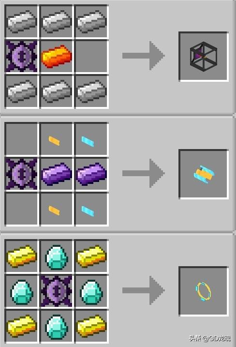 稳定器框架需要用铁锭,双足飞龙核心以及觉醒龙锭合成;稳定器内转子需要用觉醒龙锭,龙芯以及龙锭合成;稳定器转子总成需要双足飞龙核心,龙锭,稳定器内转子以及稳定器外转子合成;稳定器外转子需要钻石,龙芯以及龙锭合成;稳定器聚焦环需要用钻石,金锭以及双足飞龙核心合成。